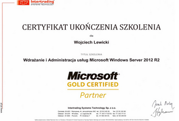 Jestem odpowiednią osobą, jeżeli szukacie Państwo profesjonalnych rozwiązań, fachowej rady oraz nastawienia na uzyskanie jak najlepszego efektu końcowego. Jako administrator serwerów jestem osobą odpowiedzialną za utrzymanie i obsługę serwerów, na których przechowywane są zasoby firmowe jak i użytkowników. Zajmuję się administrowaniem serwerami fizycznymi, serwerami wirtualnymi opartymi o technologie Hyper-V, Vmware oraz KVM.